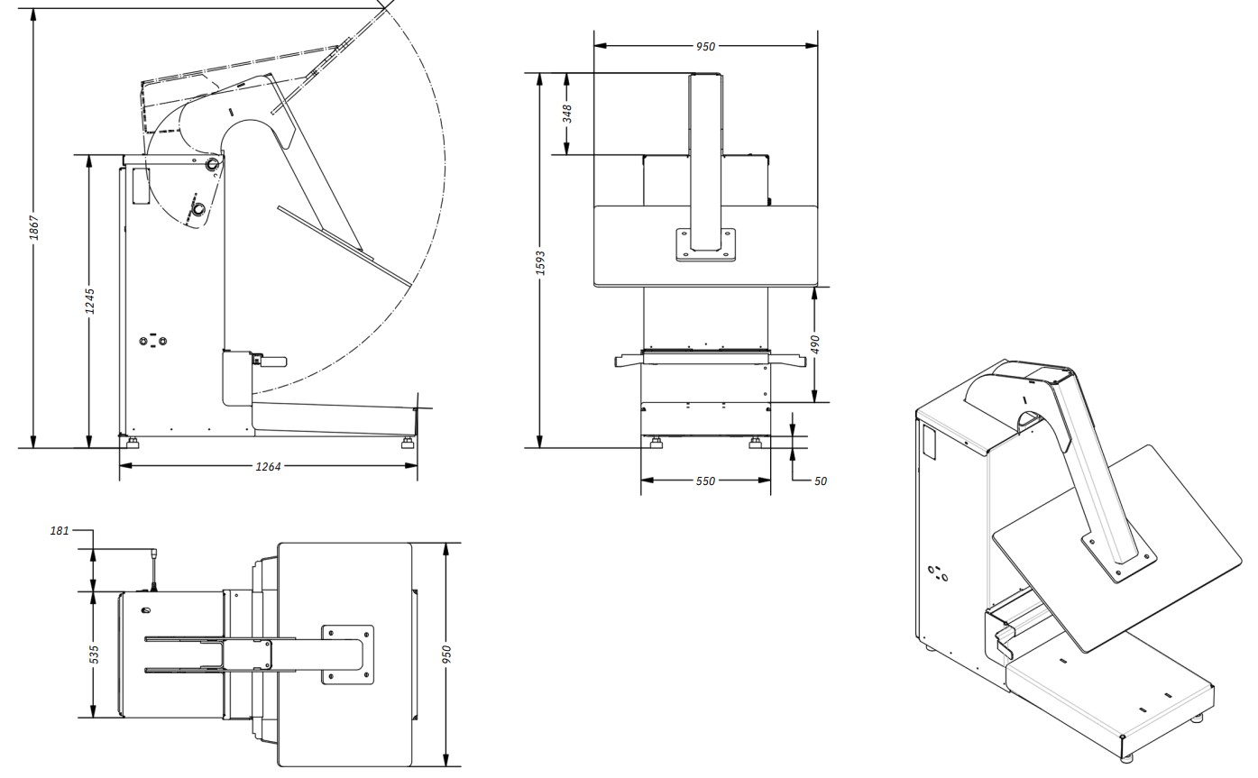 Height: 2120 mm Width: 1160 mm Depth: 1150 mm Weight: 270 kg
